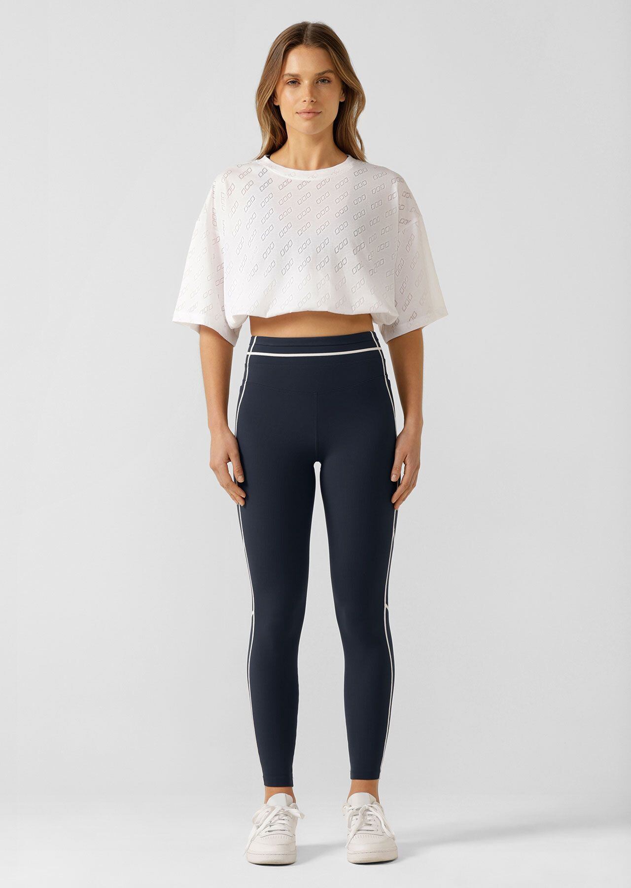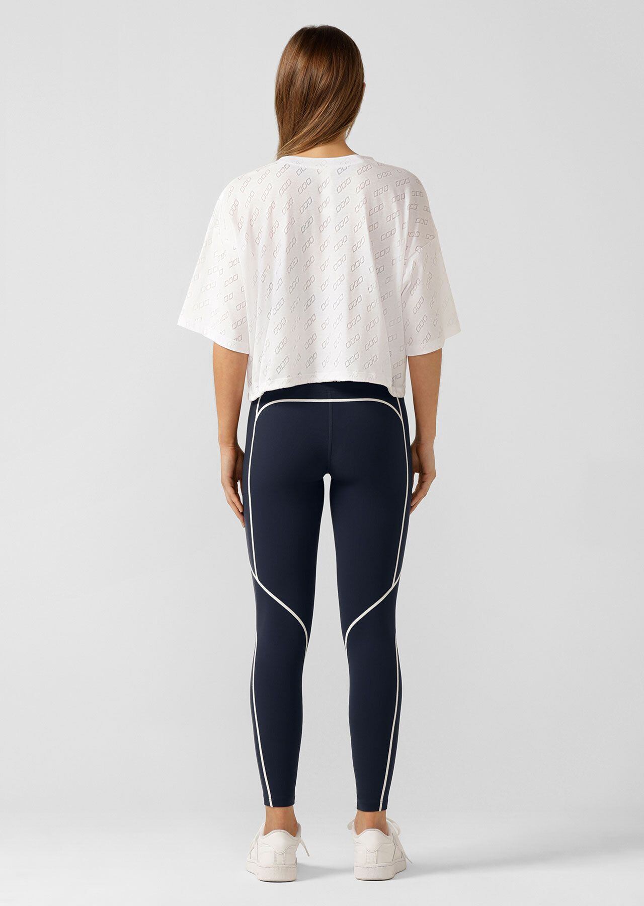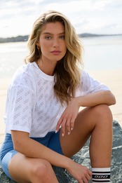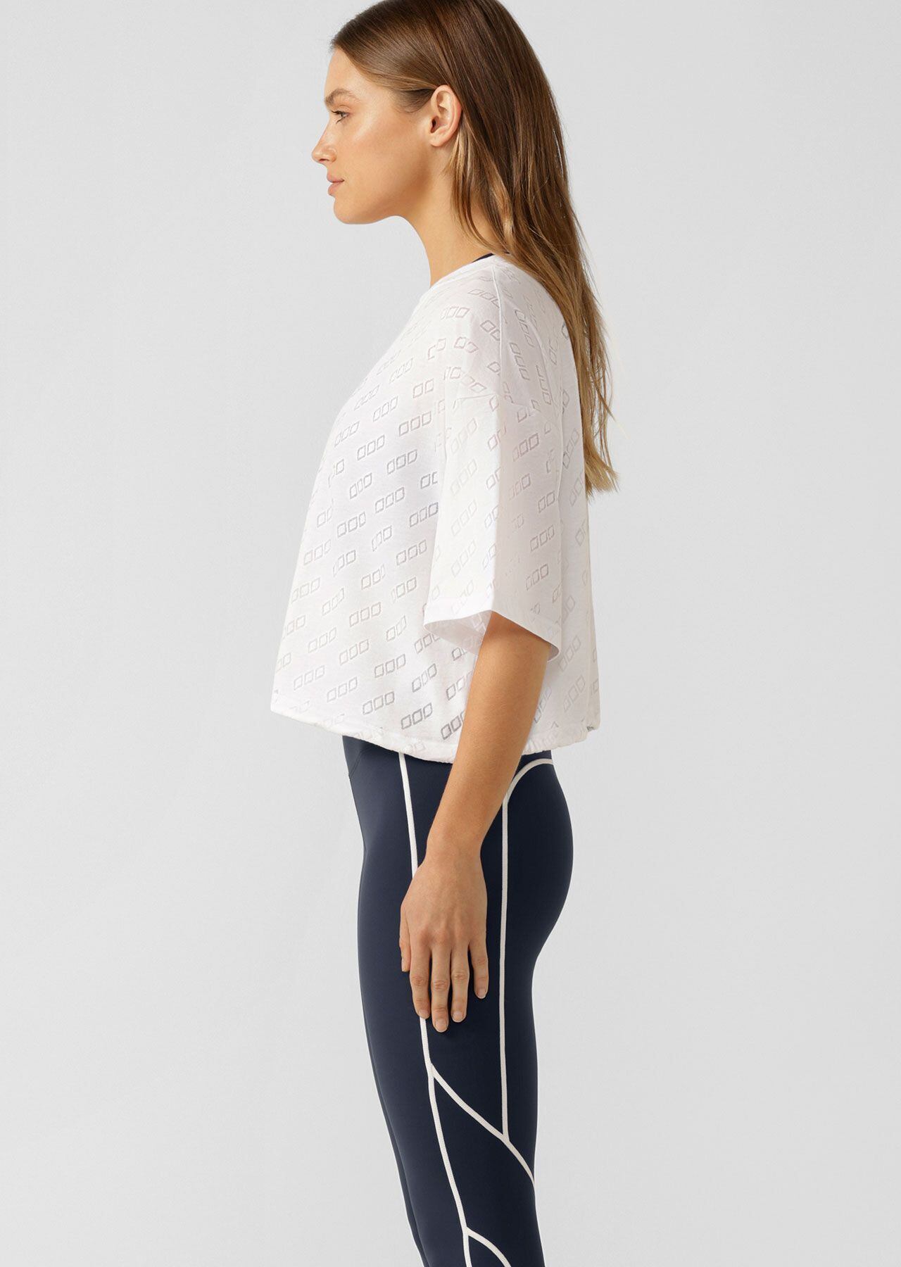 クロップド丈のTシャツ。